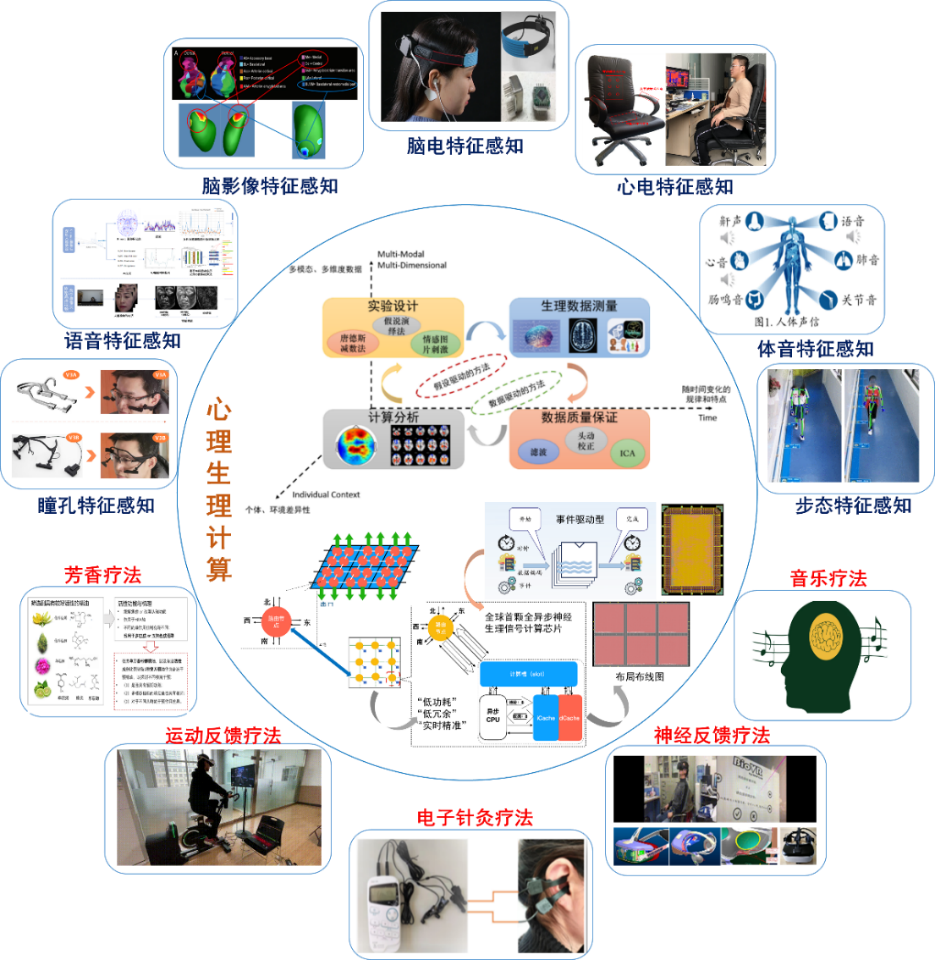 多年来,胡斌教授团队在脑健康工程领域开展了变革性诊疗理论和方法研究,研发出了一系列“精神状态评估与干预系统设备”,通过客观有效的量化评估技术和非药物干预方法来实现对精神障碍的精准分层、分类评估与有效干预,改善当前精神障碍的症状描述型诊断方法主观性强、误诊率高、有效治疗率低的问题。近年来,学院和校医院统筹资源配置,推动医疗科研平台建设,基于脑科学技术与神经工程研发资源成功获批建设脑健康智能评估与干预教育部重点实验室。实验室围绕“健康中国2030”等国家重大战略需求,紧跟“一体两翼”的中国“脑计划”,瞄准“智能医学”战略科研新方向,依托“计算机科学与技术”与“生物医学工程”一级学科,基于脑科学数学建模、数学物理反问题、生物数据分析、统计推断和科学计算等方面的扎实工作基础,在脑功能性疾病研究的理论与方法、脑功能性疾病诊断与非药物干预技术、脑机融合神经康复技术等方向展开原创性探索,充分发挥计算机应用、人工智能、生物医学工程多学科交叉融合优势,在脑功能性疾病认知机制、神经解码调控方面取得了巨大进展,研究成果的经济和社会效益显著。实验室的发展目标是打造以脑健康智能评估与干预领域的理论研究、技术开发和人才培养为核心,具有攻克“卡脖子”技术能力的创新团队,形成具有国际影响力的重大科研成果。